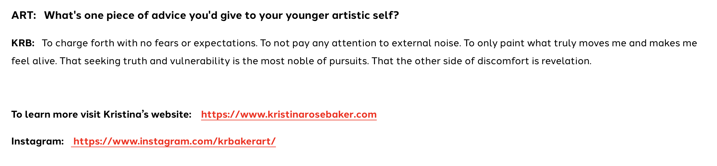 I invite you to read the full interview to discover more about my process, motivations, and influences, in and outside the world of art-making.