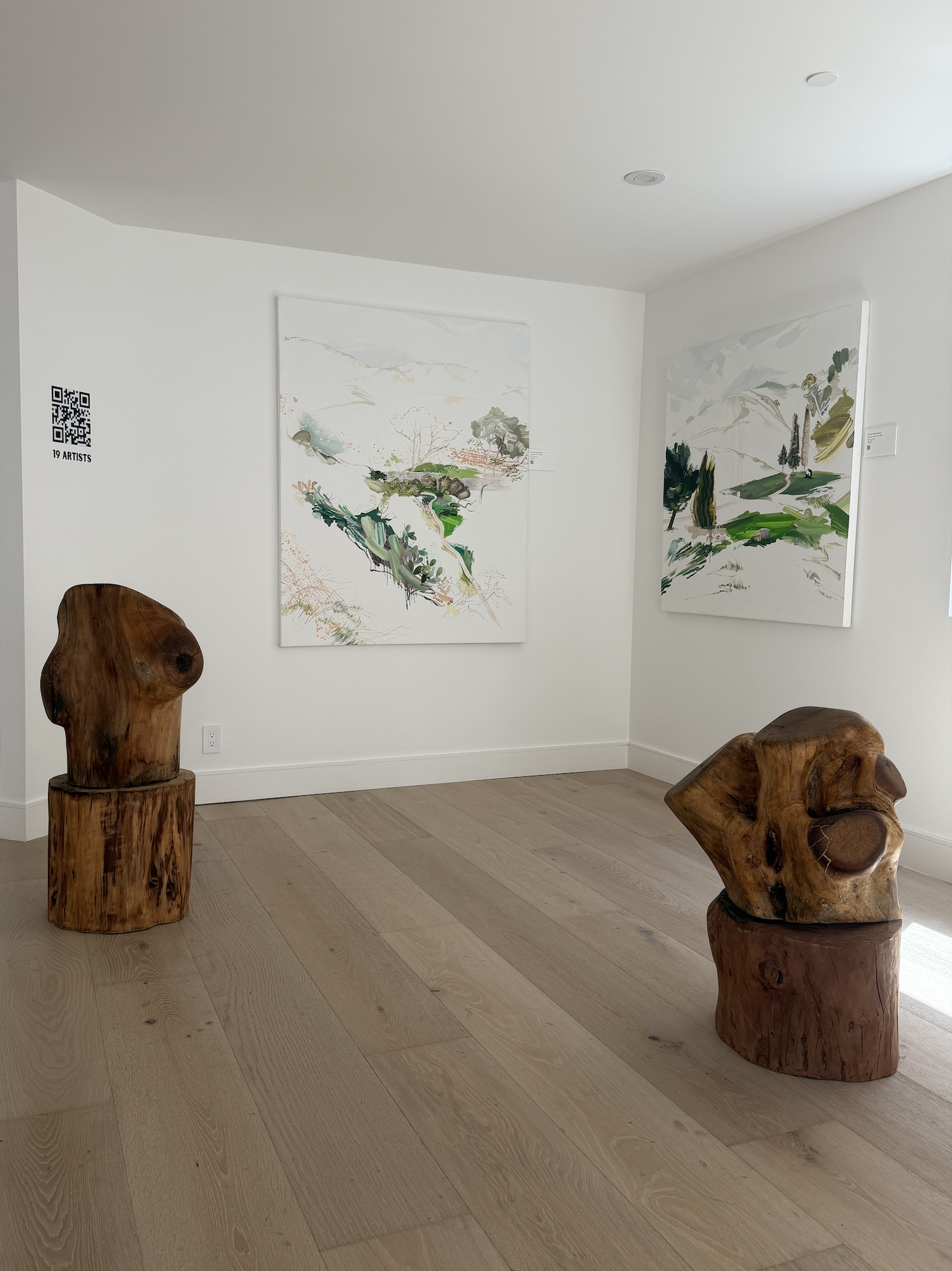 Sculptures by Tommy Chong newly installed in conversation with my paintings at Dialogues on the Knoll.